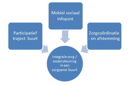 Hoe? Door de combinatie van een buurtgericht traject (samen met buurtbewoners), een breed toegankelijk welzijn & zorgonthaal (‘mobiel sociaal infopunt’) en een betere zorgcoördinatie – en afstemming.